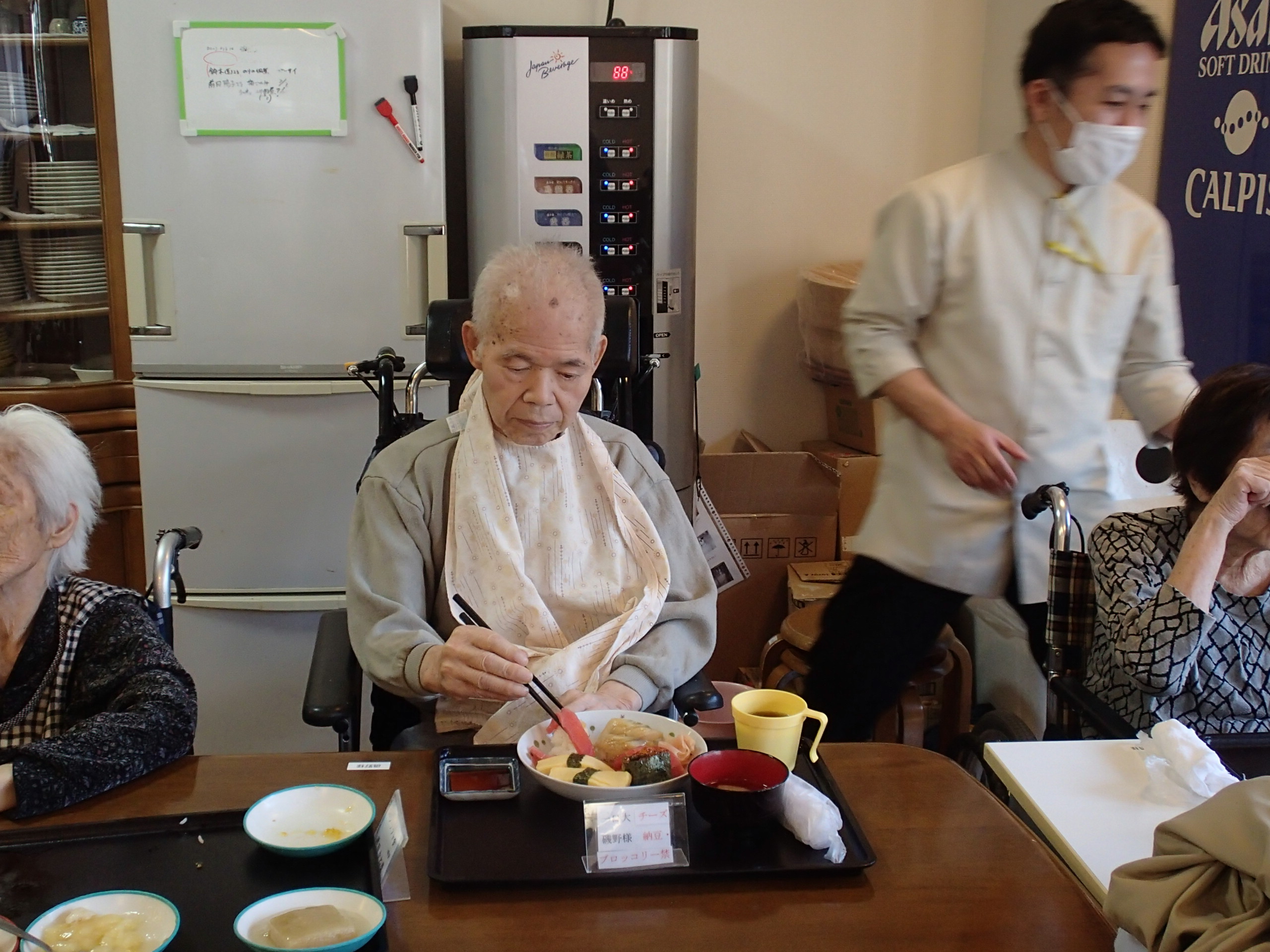 入居者様のおめでとうの声掛けにありがとうと返して下さり、嬉しそうな笑顔で暖かい気持ちになりました。