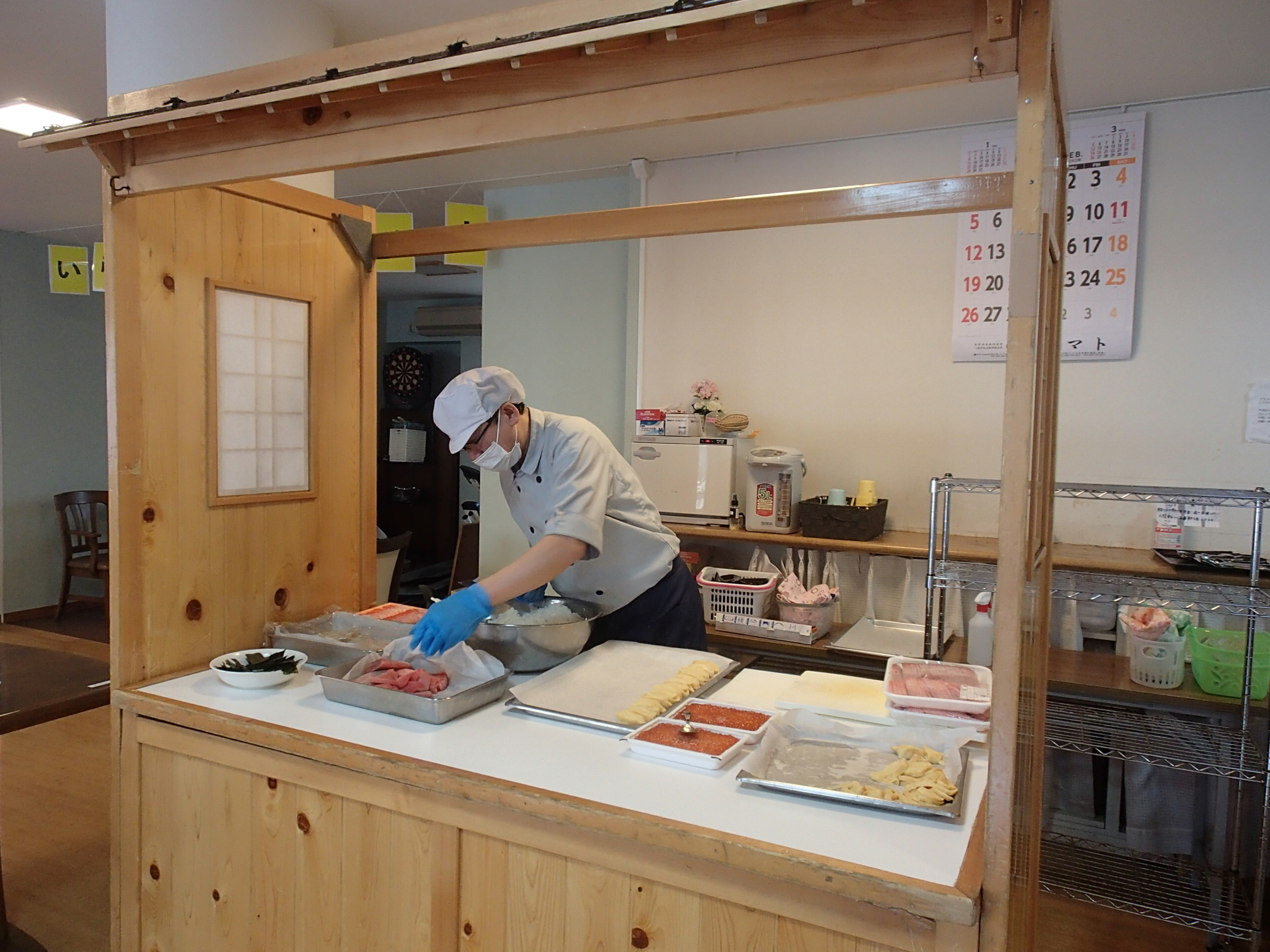 個々に注文された大好きな寿司ネタを食堂の屋台にて握ってご提供(*^_^*)