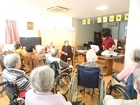 本日は、水曜日恒例の音楽療法の中で、1月お誕生日の方のお祝いをして頂きました。