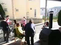 玄関前で焼き芋を作っていましたので、近くの小学生も参加して下さいました。