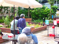 本日、当グリーンライフ草加に入居されました。ご家族に、ホームページにお顔の掲載のお話をしましたら、ぜひ、ネットで観れるので、様子も分かるからとの要望で掲載させて頂きました。音楽療法で楽しまれた後に写真を撮らせて頂きました。