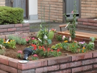 先月、改修いたしました「鶴の家」の中庭の花壇の花がたくさん咲きました。