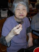 昼食の準備を手伝いに行くと、元気にラジオ体操を行う姿を