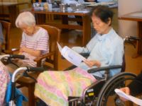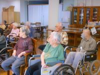 いつもの音楽療法とは違い、大きな声ではなく、オカリナの音色も聞きながらちょっと抑えた歌声