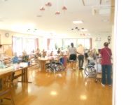 でも、ご入居様はエアコンが効いた室内で快適、食事前のラジオ体操も何のその。