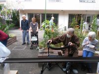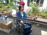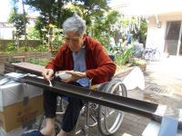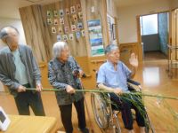 この後流しそうめんをするための準備もしていたので、一部のご入居様に園児他らの笹竹を受け取っていただきました。