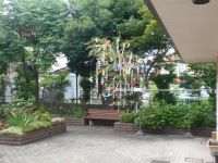 流しそうめんをおこなうので、中庭に飾らせていただきました。