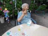流しそうめん、考えてみればそうめんを流すで、ただのそうめんなのですが、流れるだけでただのそうめんではなくなり、なぜか心が浮かれるこの気分、ご入居様も同じようで、食堂に集まってくるところから食事の時とは違い、又、順番を待つのもいつもとは違い、「まだか」「まだなのか」と落ち着かない様子でした。