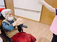 なかなか外に出られない為、スタッフと共にリズム体操をしたりしています(^^)/♪