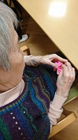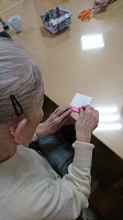 新聞紙で作った棒を手に『えぃっ』と振り上げた顔が真剣なご利用者。(*^O^*)