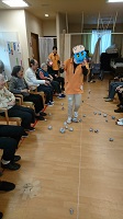 鬼退治でスタッフが鬼になり新聞紙を丸めた豆を『鬼は外』皆さん目がキラキラストレス解消と力いっぱい楽しんで投げていました。『楽しかった(^O^)』と喜ばれました。