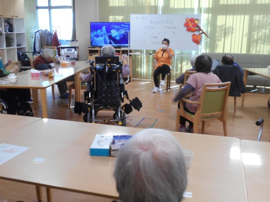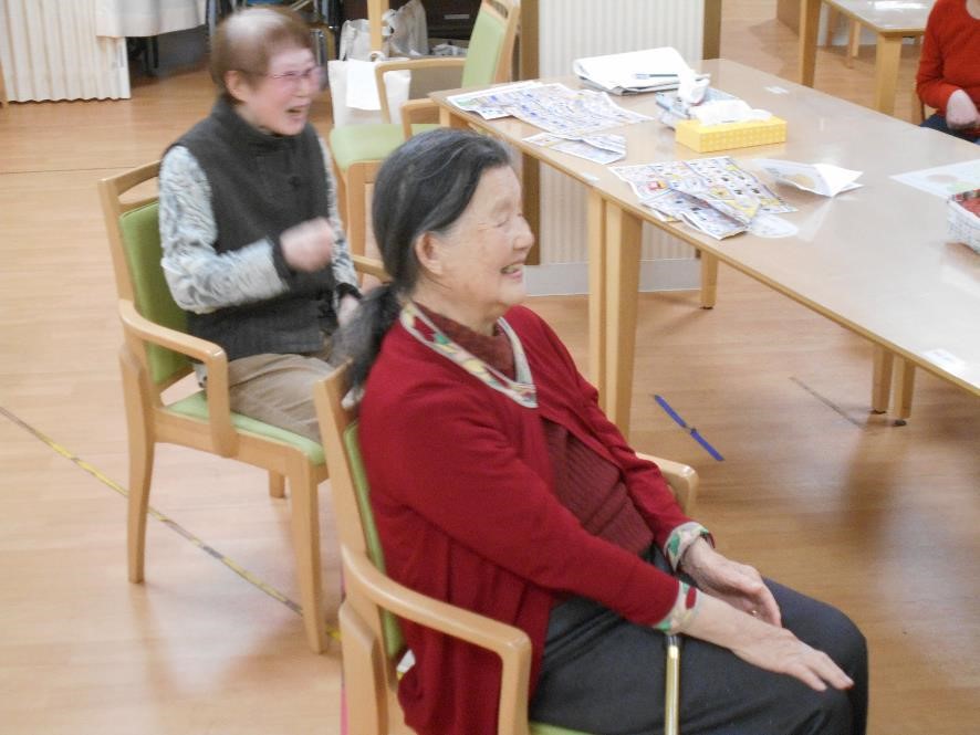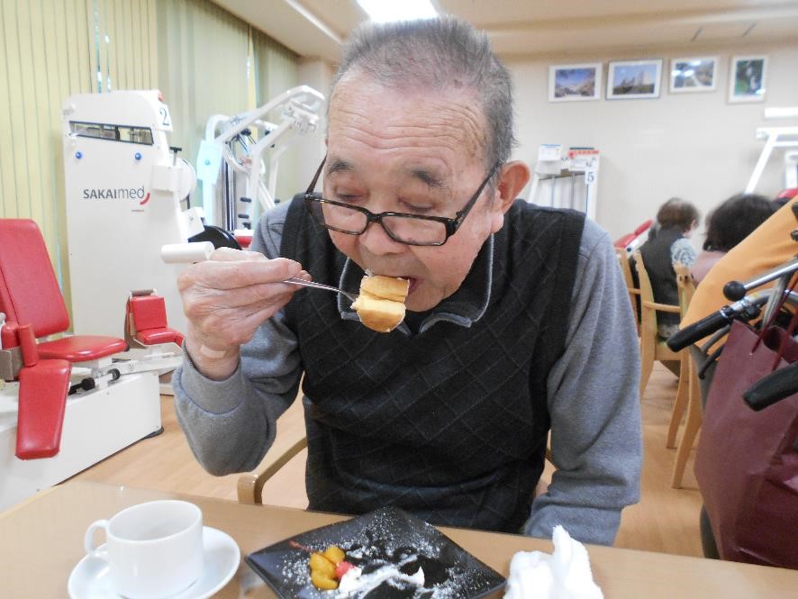 掛け声に合わせて身体を動かしていると・・・。なんだか自然に(^ω^)笑顔が出ます。おやつレクの『 ケーキ 』みんなで美味しく頂きました。(*^-^*)