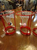 スタッフが考案し4つのネットには100 50 50 10と点数がついています。投げるボールは一人三つで皆様、100を狙いますが簡単には入りません。その後二回戦目でいきなり100に三つ入れた方がいました。拍手喝采👏その後も皆様頑張って投げられていました(^^♪