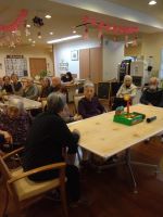 レクリーダーが考えたのは「都道府県クイズ」です。47の都道府県を言っていただいたのですが30県位までは順調でしたが・・・スタッフがその件の名物とか観光名所を伝えながら、何とか46県まで出て、あと1件が出なくて、さらにヒントを・・・三文字で山が綺麗でお魚が美味しくて、宇奈月温泉があります。わかりますか?47件目の正解は富山県でした。楽しみながら考えられたようでした。