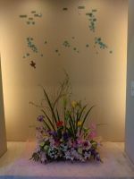 今回はお花畑をイメージした作品です。ご家族様も「お花変わったわね」「確かにお花畑に見える」と写真を撮っていました。先生のお花は毎回、ご家族様にも大好評です(^^♪
