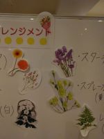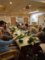 今回も機能訓練指導員がホワイトボードにお花の写真と名前を描いてくれました。皆様、お花とにらめっこ👀しながら一生懸命に活けていました。今日も素敵なアレンジメントが完成しました!