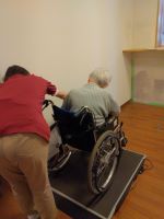 遅番スタッフが順番に量っています。体重計に乗った瞬間に「あ~、バック」とご入居者様が慌てていました。座面の脇に置いたバックを取りたいようでスタッフが取っていました。少しでも軽くしたという気持ち、よくわかります( ´艸`)
