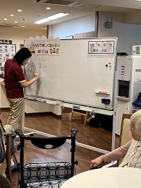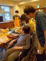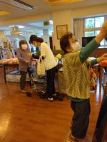 今日は「お買い物レク」の一環として東北、北海道の物産展と洋服の販売を実施しました。