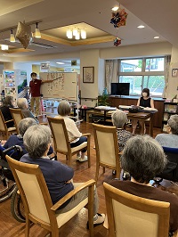 可愛い動物の絵や細かい花の絵を一生懸命に塗っていました。なでしこの花を塗っていたK様にスタッフが「K様は大和なでしこみたい」と言ったら「私はどくだみよ」・・・と.思わず笑いが沸き起こっていました( ´艸`)