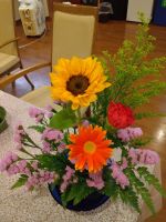 ミニ向日葵🌻がメインで綺麗です。全体的にビタミンカラーでまとめられていて、見ているだけで元気が貰えそうです。ご面会の際は是非、ご覧くださいませ。