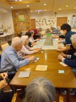 折り紙の達人が紫陽花の折り方を皆に教えてくれました。悪戦苦闘しながらも可愛い紫陽花が完成しました。