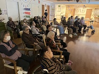 機能訓練指導員の「一,二、三、四、五、六、七、八」という掛け声に合わせて息もぴったりです。