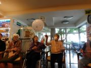 新入社員は初めての風船バレーで優しく皆様に風船を渡していました。開始から6回くらい打ったら一番大きい🎈が割れて一番びっくりしたのは新入社員でした( ´艸`)今日も顔や頭で受けたり、一度に2個の風船が飛んできたりでアクシデント続きでしたがその度に笑いが飛び交い楽しい一時間でした。