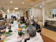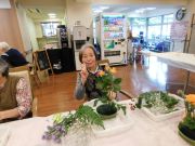 皆様、一生懸命に活けていて📸カメラを向けるとにっこりと微笑んでくださいました。出来栄えにご満足そうな皆様、お部屋の飾るのが楽しみのようです。