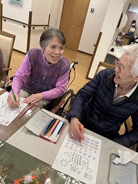 そしてK様ご夫婦(*´ω`*)お二人並んで昔の出来事を話しながら塗り絵を楽しんでいらっしゃいました(^0_0^)