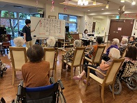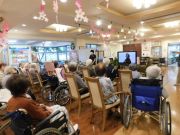 最初に3階の女性コーラス部の方々がリクエストされた曲を皆一緒に合唱しました。いつもフロアで輪になって色々な歌を唄っていますのでコーラス部と呼ばせていただいています。今日も午前中に合唱していました( ´艸`)その後は他の方々からも沢山のリクエストが出て楽しいカラオケ時間でした。