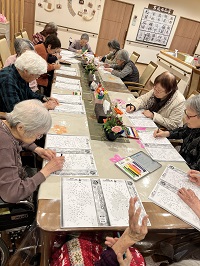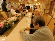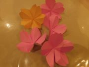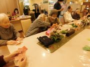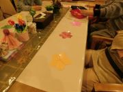 写真の桜は折り紙の達人、O様の作品です。折り方が複雑ですが達人とスタッフに教わりながら完成!「花より団子」と折り紙を口に当てておちゃめなN様((´∀`*))思わず周りの方々も大笑いでした。折りあがった桜はテーブルに飾らせていただきました。