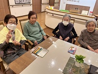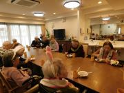 フロワーにお邪魔して一緒にお祝いさせていただきました。あと4か月後に101歳になる方がいらっしゃり、皆様の目標になっています(独歩です)「こんなに長生きするとは思っていなかったけど、まだ、ひよっこだね」とこんな会話も聞こえてきました。皆様、喜んでくださりお祝いの後はゲームを楽しみ、一緒にお誕生日🍰を召し上がっていただきました。