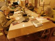 好きな絵を選んでいただいて集中されていました。細かな絵を丁寧に塗られたり顔に間違って違う色をつけてしまった方は「消しゴムで消せたら」と少し後悔されたりしていましたが最後はお互いの絵を交換したり披露してくださり笑顔で終了となりました( ´艸`)