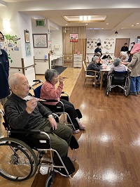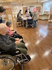 今回は「雛祭り🎎」用のアレンジメントになっています。可愛いお雛様も一緒に飾られています。早速、気づかれたご入居者様も「素敵、今日は風が冷たいけど、春ねぇ」と眺めていらっしゃいました!