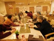 3チームに分かれて七並べをおこなっていました。手の届かない方には代わりに並べてあげたりと仲良く楽しまれていました。