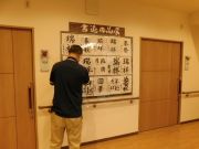 お題は「瑞祥(ずいしょう)」おめでたいという事でこの時期にぴったりと思い選びました。沢山の方々が一生懸命に書いてくださり10枚以上書かれた方もいらっしゃいます。最後にお気に入りをいただき早速、営繕さんが作品展の場所に掲示してくれました。