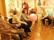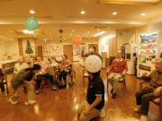 大きい風船1つから始め徐々に増やし今日も合計4つの風船で楽しんでいただきました。最初に大きな風船が割れて次に小さい風船も割れて「ぱぁ~ん」という音にびっくりされるのは一瞬、すぐに風船を追って夢中でとても白熱して途中、休憩を入れましたが大いに笑い、大盛り上がりでした。最後は深呼吸をして手の消毒と水分補給をしていただき終了となりました((´∀`*))