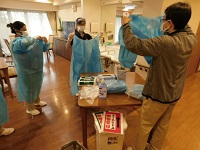 開始前に何度か研修はしていますが、改めてガウンの着脱方法などの確認を行って頂きました。