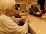 スタッフの提案でダリアを折っていただきました。折り紙の達人も勿論、講師で参加してくださり皆様も細かい作業ですが一生懸命に頑張っていました。皆様の作品を集めて📷でパチリ!茶色い折り紙で折ったダリアを「シイタケみたい」と言われた方がいましたが、そう見えると言えば確かに見えますね( ´艸`)