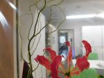 赤のお花がアクセントになっていてとても素敵です。↓の写真はグロリオサとウンリュウヤナギです。グロリオサはかがり火のような形の亜熱帯のお花でウンリュウヤナギは竜が雲の中を昇っていくように見えることから名づけられたとか・・・毎回、先生にお花の名前とか由来を聞けるのが楽しみです!