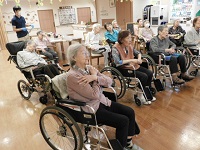 🎈が卓球チームの方の頭に飛んだり🏓のボールが風船チームの方に飛んだりとしていましたがお互いに夢中、そんなの関係ない( ´艸`) という感じでしたが途中、風船が割れた時にはびっくり😲今日は最高で🎈が5個割れました。どちらのチームも身体を動かして楽しまれ最後、手の消毒と水分補給の時は皆で「楽しかったわね」と笑顔で会話されていました。
