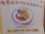 「ロールケーキのフルーツ添えで」🍓ジャムがかかりボリューム満点。皆様も「とても美味しかった😋」とあっという間に完食されていました。