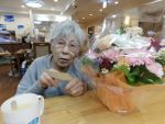 息子様からお花💐が届きとても喜んでいらっしゃいました。そして皆様からお祝いのメッセージと歌のプレゼントとサプライズにも素敵な笑顔を見せてくださいました。
