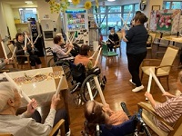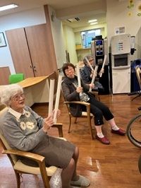 柔軟運動したり、リズムに合わせて棒をたたき合わせたり少し肩たたきでマッサージしたり(*´ω`*)