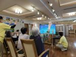 長いコロナ過で運動不足が心配されている方には良いチェックになったと思います。握力、ステップ、立ち上がりテストとTANOゲームで画面を観ながら身体能力を測っていただき点数も出ます。一昨年に腰痛で動けなくなり急遽、入居されてリハビリを頑張り自宅復帰されたT様も健康チェックに来てくださいました。お元気そうで何よりです。ご参加いただいた方には手作りのフルーツサンド、お茶、マグカップをお渡しさせていただきました。午後はご入居者様にも楽しんでいただき脳トレにも繋がり皆様の平均年齢が3歳程若返りました((´∀`*))