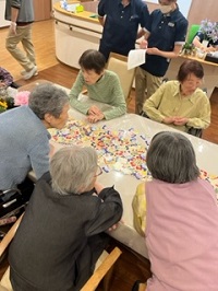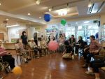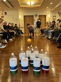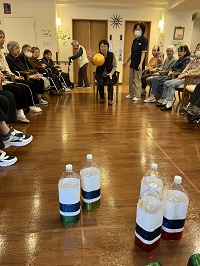 今まで3つだった風船を4つにして一つから段々と増やしていき変化を楽しんでいただきました!今回も何処から🎈が飛んでくるのやら、油断はできません。その気がなくても顔で受けたりと((´∀`*))大笑いの皆様でした!最後は全員の方に水分補給をしていただき次回も楽しみにされていました。