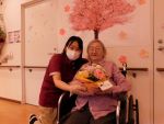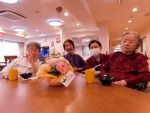 いつも嬉しいそうに眺めそして差し入れのあんぱん、🍎ジュースを美味しそうに召し上がっていました。このお話は過去系になってしまい先日、旅絶たれた〇〇様!昨日ご家族様が荷物の片づけに来られ「此処の施設で良かった」と有難いお言葉をいただき「花は来月まで契約しているので施設で飾ってください」との事で今日 ”〇〇様からホームの皆様へ” というメッセージカードが添えられて届きました。担当だった機能訓練指導員も「あの笑顔が忘れられない」とお花を見つめていました。ご入居者様達も喜んでくださっています。〇〇様のお席に飾らせていただきました!優しいご家族様の愛にいつも包まれていてコロナ過でなければもっともっと一緒に居させてあげたかったと・・・🌊此処で一緒に過ごした事やご家族様と楽しく過ごされていた数々の場面が蘇ってきます。