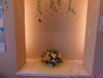 淡いオレンジのバラが引き立ち今回は全体的に暖色系にまとめられていて「春の暖かさ」を感じるようです。玄関が明るくなりました。毎回、玄関のお花を楽しみにされている方が多く今回も楽しんでいただきます🌺