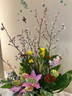 本日の午後は、フラワーアレジメントを行いました。