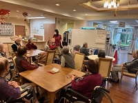本日は、朝のラジオ体操後に機能訓練指導員による脳トレを行いました( *´艸`)